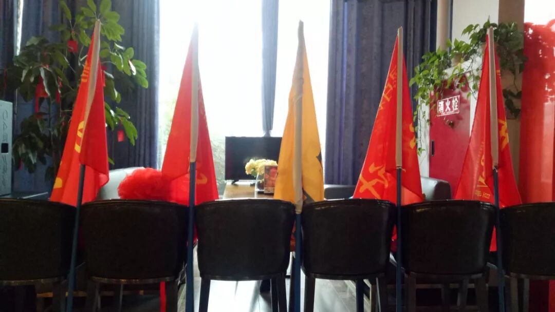会议开始各部门代表领取本部门的旗帜